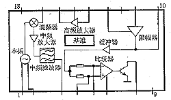 RX3310A是台湾HMARK公司生产的专门用于幅度键控ASK调制的无线遥控及数传信号的接收集成电路,内含低噪音高频放大、混频器、本机振荡、中频放大器、中频滤波器、比较器等,为一次变频超外差电路,双列18脚宽体贴片封装,主要技术指标如下: