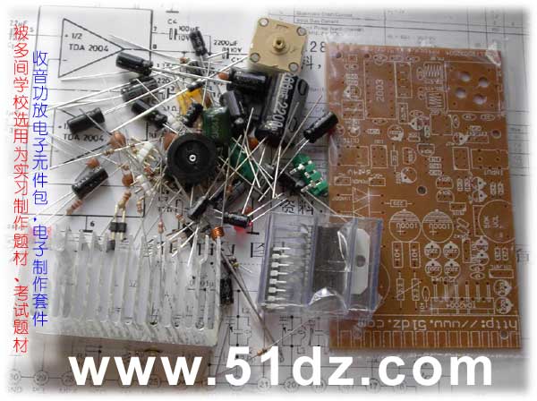 调频收音+20W功放套件,收音部分采用2003集成电路,功放部分采用TDA2004集成电路,配有特制的高效优质散热器。全部采用正规厂家生产的优质元件,本电路板既是高保真功率放大器,又是高品质FM收音机,放音效果完全达到汽车音响效果。装配过程有一定的难度,建议有一定基础的朋友购买。